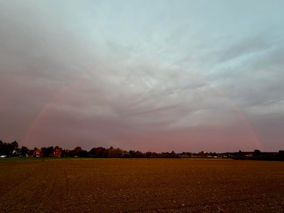 Der perfekte Start in den Feiertag: Ein wunderschöner Sonnenaufgang und dann auch noch ein Regenbogen. Genießt den freien Tag!![]() |