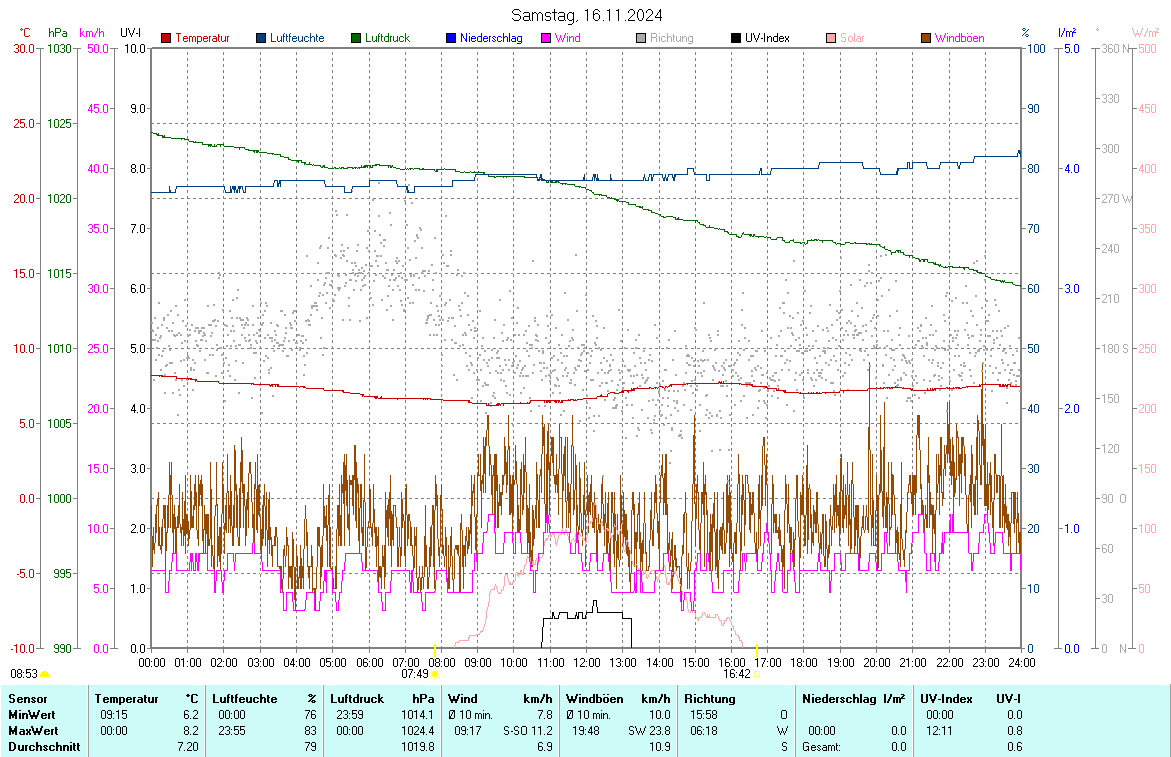 | Messwerte von Samstag, 16.11.2024 | |||||||||||