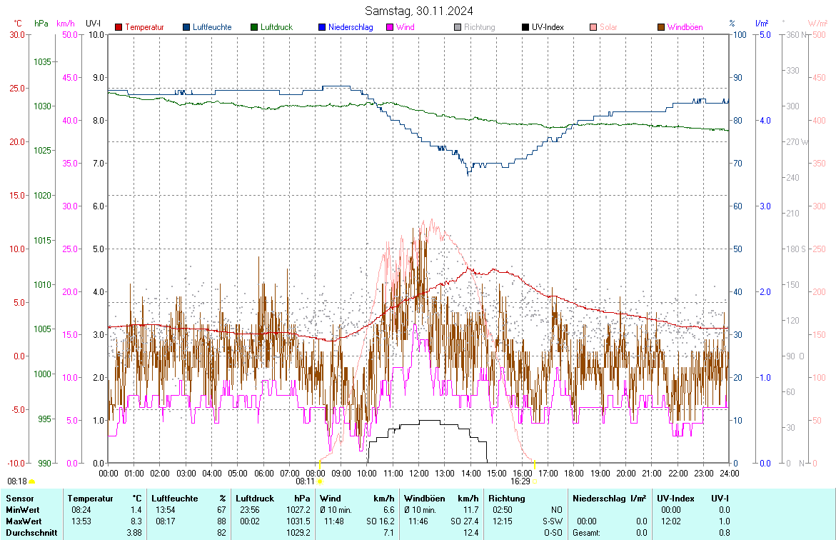 | Messwerte von Samstag, 30.11.2024 | |||||||||||